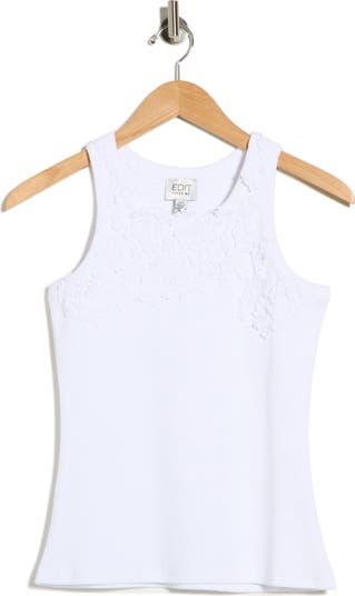 Tonal floral appliqués adorn the neckline of this close-fitting ribbed tank made from stretch-kissed cotton.