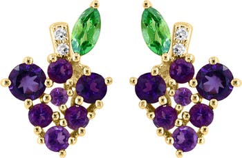 Diamonds and gemstones are bursting with charm on these whimsy grape-bunch stud earrings finessed in fine 14-karat gold for a lasting luster.