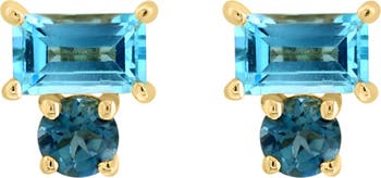 14K Gold Londo Blue Topaz & Emerald Stud Earrings