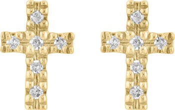 Dainty prong-set round diamonds bring luxurious shimmer to these cross stud earrings crafted from sterling silver and plated in warm 14-karat yellow gold.