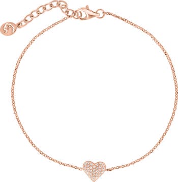 Pavé diamonds bring luxurious sparkle this dainty heart bracelet crafted from sterling silver and plated in warm 14-karat gold.