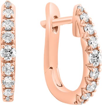 Graduated diamonds bring luxurious sparkle to elegant huggie-hoop earrings crafted from polished 14-karat rose gold.