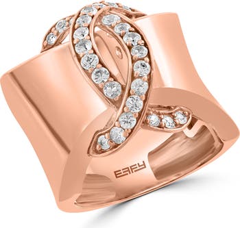 14K Rose Gold Plated Sterling Silver White Sapphire Ribbon Band Ring