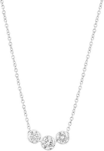 Bring subtle sparkle to your neckline with this icy 14‑karat white‑gold necklace showcasing a trio of lab‑grown diamonds.