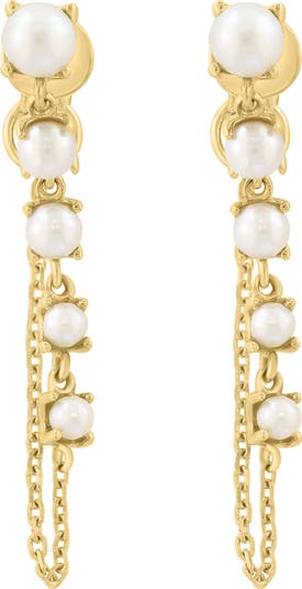 Graduated freshwater pearls trace these swingy draped chain front/back earrings crafted from warm 14-karat yellow gold for elegant shine.