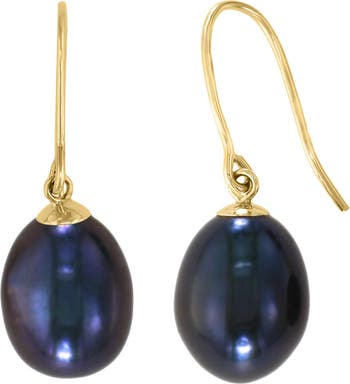 A blue cultured pearl adds elegance to 14K gold earrings that are sure to make a statement.