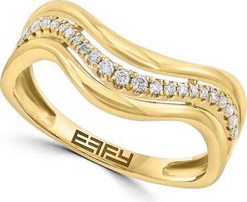 Dainty diamonds bring luxurious sparkle to stackable wavy-band ring crafted from glossy 14-karat gold.