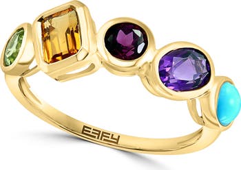 Add the perfect finishing touch to your ensemble with this 14K yellow-gold ring featuring multi-cut sapphires.