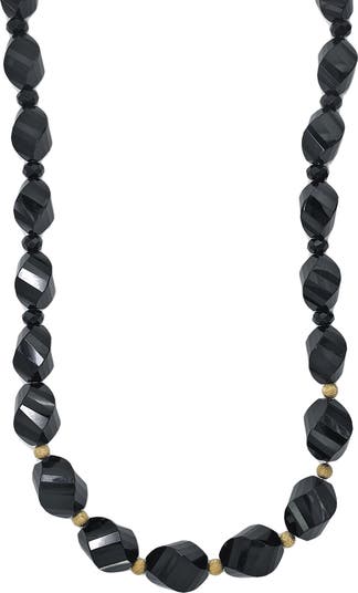 Add the perfect finishing touch to your ensemble with this 14K yellow-gold necklace featuring rough-cut onyx beads.