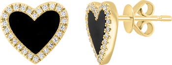 Show off romantic sparkle with these 14-karat gold stud earrings featuring onyx hearts framed by dainty diamond halos.