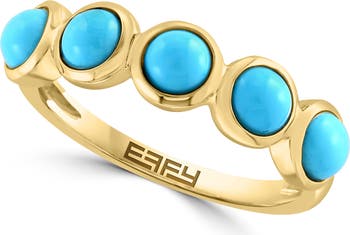 Show off a pop of color with this turquoise five-stone ring crafted from gleaming 14-karat yellow gold.
