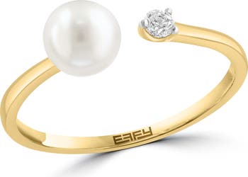 A glossy Akoya pearl and dainty diamond solitaire add elegant sparkle to this American-made ring crafted from gleaming 14-karat gold.