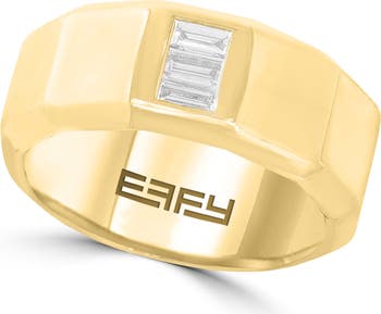 Baguette-cut diamonds bring luxurious sparkle to this wide-band ring crafted from sterling silver with a warm goldtone finish.