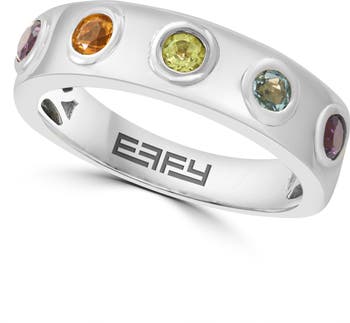 A vibrant mix of bezel-set gemstones sparkles from a sterling silver ring that instantly adds elegance to your look.