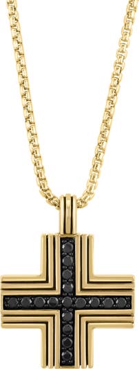 Black spinel adds the edginess you crave to a cross-shaped pendant suspended from a chain necklace crafted from sterling silver with a polished finish.