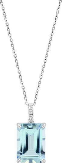 White sapphires shine from the slim bezel that suspends a blue-topaz pendant on this necklace crafted from sterling silver.