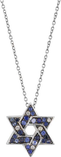 Bring meaningful polish to your everyday ensembles with this Star of David pendant necklace forged from sterling silver and detailed with blue and white sapphires.