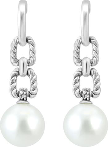 Dainty diamonds add dazzling detail to link-drop earrings finished with freshwater pearls and finessed in sterling silver for a lasting radiance.