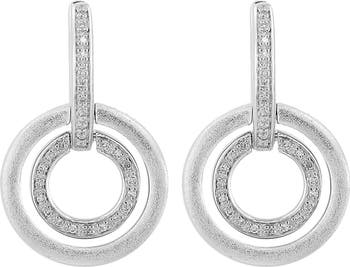 Dainty diamonds bring elegant shimmer to the orbital circle drops of these huggie-hoop earrings crafted from sterling silver and plated in 14-karat gold.