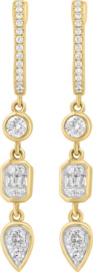 Bright-white diamonds highlight the posts and drops of these elegant earrings warmly plated in 14-karat gold.