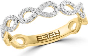 Sparkling diamonds trace the infinity motifs of this slender ring crafted from sterling silver with a warm goldtone finish.