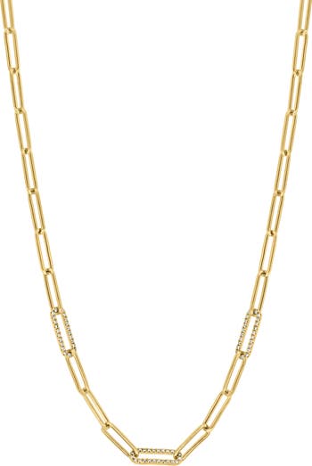 Three pavé paper clip–links add a hint of shimmer to this chain necklace, perfect for solo or layered wear.