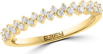 A zigzag row of bright-white diamonds lend elegant shimmer to a slim stacking ring plated in warm 14-karat gold.