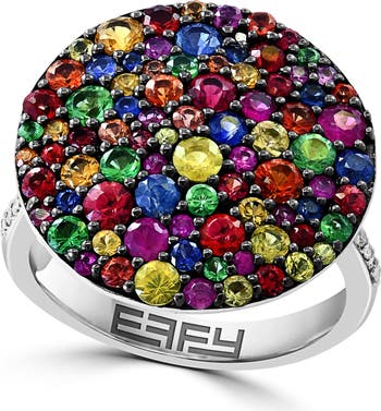 Bright-white diamonds flank the rounded top of a sterling silver ring that's centered by pavé-set tsavorite in a multicolored palette to bring striking detail to elevated looks.