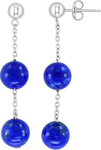 Vibrant blue lapis suspends from high-polished sterling silver studs on these chain drop earrings.