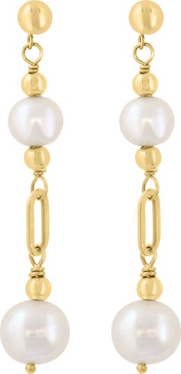 Lustrous freshwater pearls and polished beads punctuate these elegant drop earrings crafted from sterling silver with a warm goldtone finish.