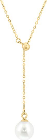 A lustrous freshwater pearl suspends from this elegant lariat necklace crafted from sterling silver with a warm goldtone finish.