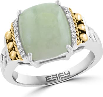Upgrade your style with a statement ring with a polished jade stone, pavé-set diamonds and 18K gold accents over sterling silver for a brilliant shine.