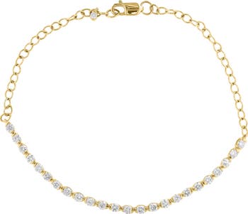 Warm 14-karat-gold plating enhances the appeal of a delicate chain bracelet fronted by a row of lab-grown bright-white diamonds.
