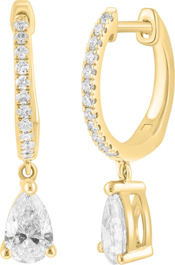 Bright-white lab-grown diamonds on the posts and drops bring elegant sparkle to polished earrings warmly plated in 14-karat gold.