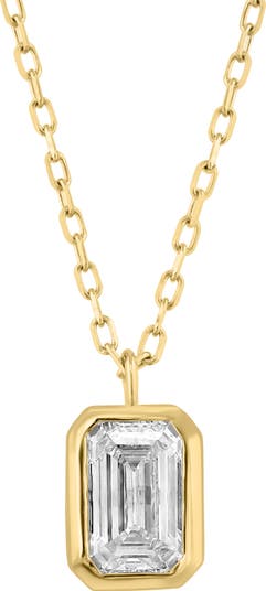 A delicate chain necklace plated in 14-karat gold suspends a lab-grown diamond pendant to bring luxurious sparkle to elevated looks.