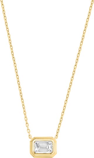 A delicate chain necklace plated in 14-karat gold is centered by a lab-grown diamond pendant that delivers elegant shimmer to special-occasion looks.
