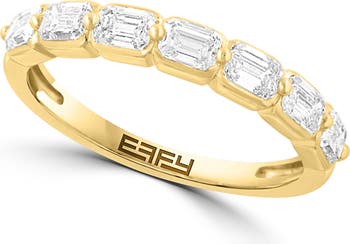 Emerald-cut lab-grown diamonds encrust the top of this ring crafted from polished goldtone plated sterling silver.