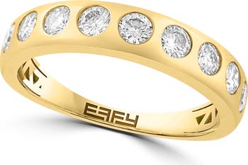 Bezel-set lab-grown diamonds enhance the luxurious shine of a wide stacking ring plated in warm 14-karat gold.