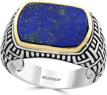Vibrant lapis lazuli adds edgy sparkle to this American-made ring crafted from polished sterling silver with gleaming 18-karat gold accents.