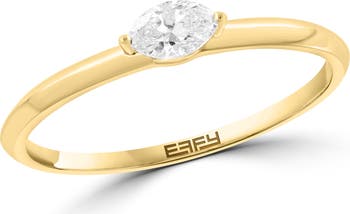 A marquis-cut diamond is prong-set atop a slender stacking ring that's warmly plated in 14-karat gold.