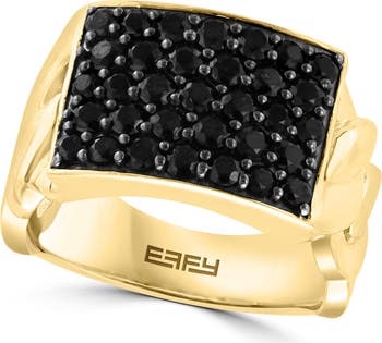 A chain texture flanks the polished 14-karat gold-plated band of a ring that's topped with simple yet powerful rows of black spinel.