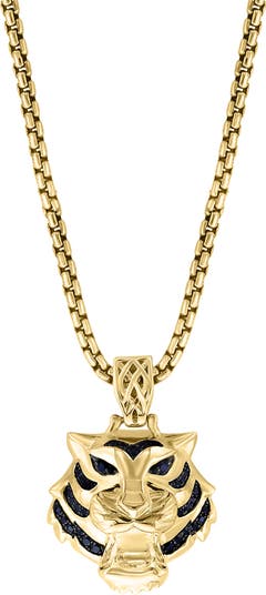 Display confidence without ever muttering a word by fronting your look with this 14-karat gold-plated necklace centered by a powerful tiger pendant complete with shimmery black spinel.