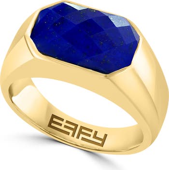 A faceted lapis lazuli sits prettily in the center of a polished signet ring that's warmly plated in 14-karat gold.