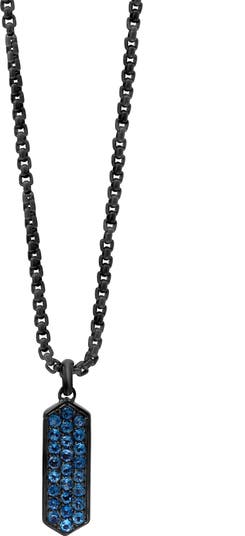 Elevate any casual ensemble with this box-chain necklace suspending a pavé pendant encrusted with blue sapphires.