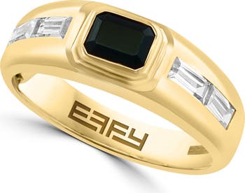 An emerald-cut onyx and baguette-cut CZs adorn the bold, wide band of this modern signet ring, crafted from 14-karat gold vermeil for enduring shine.