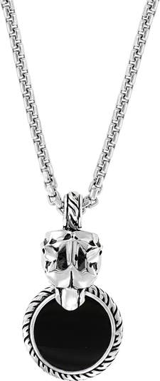Add modern edge to any casual ensemble with this box-chain necklace suspending an onyx disc pendant with a panther head.