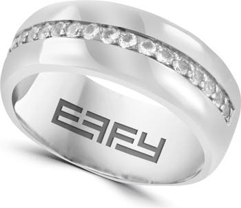 Channel-set round white topaz enrich a smooth band ring crafted from polished sterling silver.