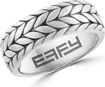 An allover texture enriches a wide band ring crafted from sterling silver with oxidized details to make the design pop.