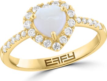 An opal heart is framed by a sparkly diamond halo and embellished band on this romantic ring crafted from sterling silver with a warm goldtone finish.
