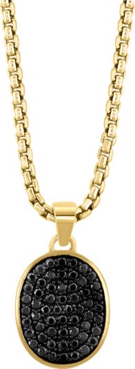 Pavé black spinel stones sparkle along an oval-shaped pendant that is set on this elegant sterling silver box-chain necklace.